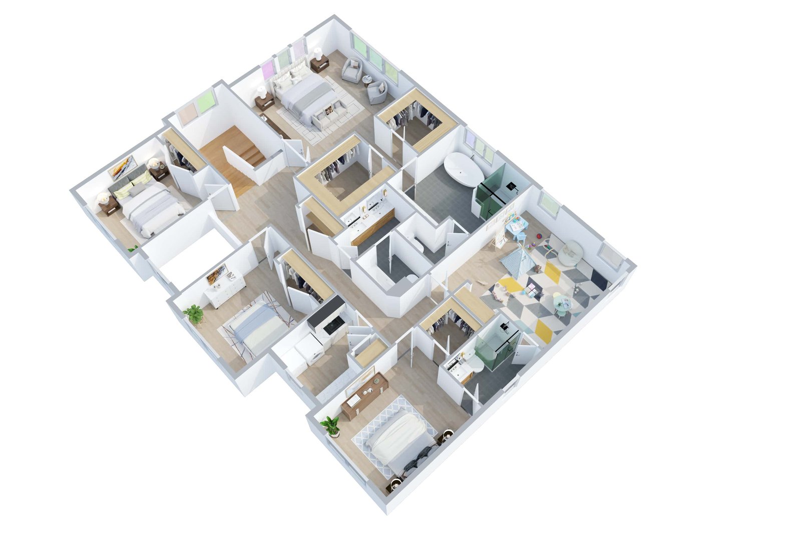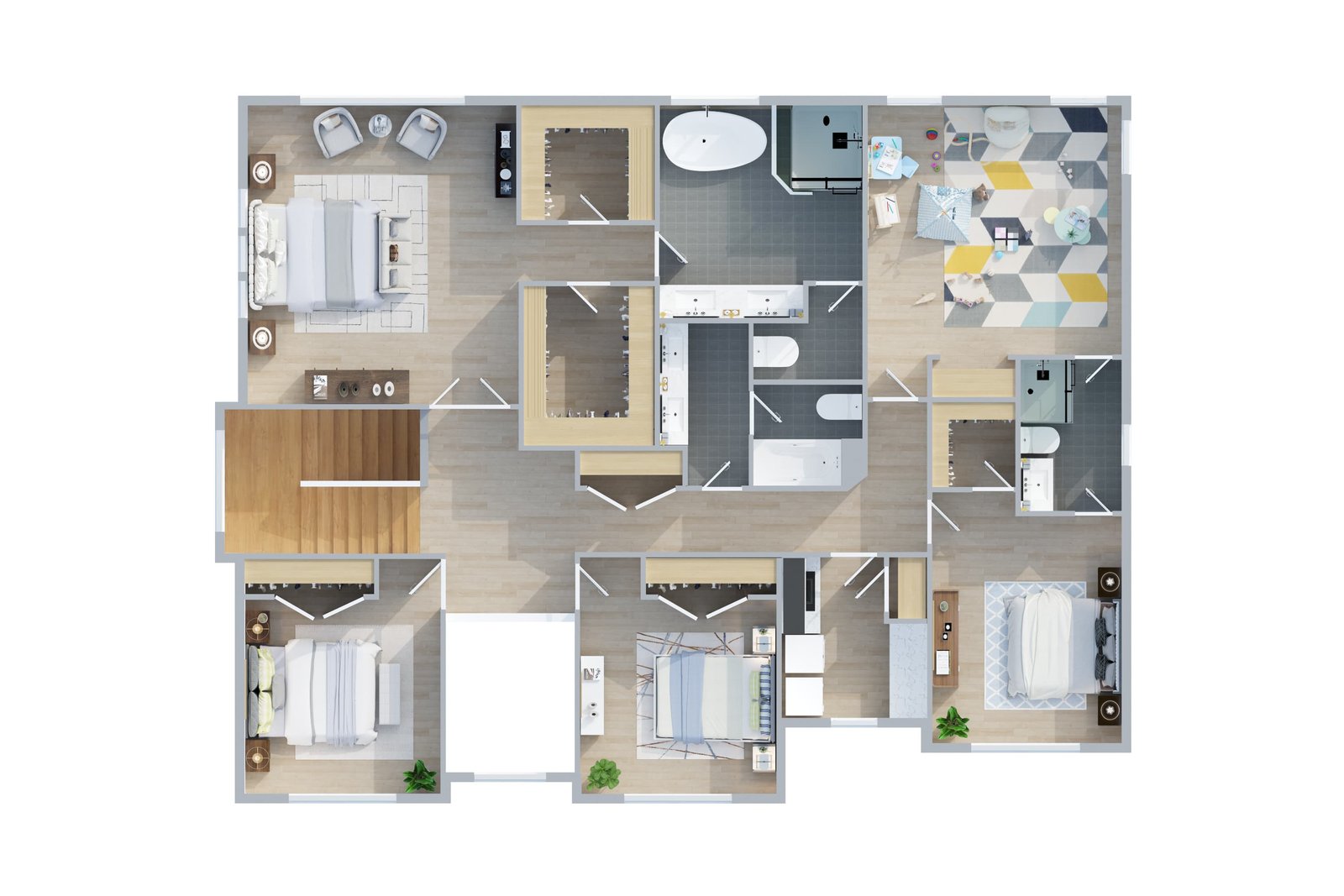 This elegant 6-bedroom, 4.5-bath home offers a spacious open layout, including five bedrooms on the second floor with an indulgent primary suite, a private bath access to tow the bedrooms with Jack and Jill style and a shared hallway bath for the other two. The first floor provides an additional guest/in-law bedroom with full bath. 10 ft ceiling throughout the homes with some bedrooms with 11ft ceiling to hold on more oxygen and quality sleep.